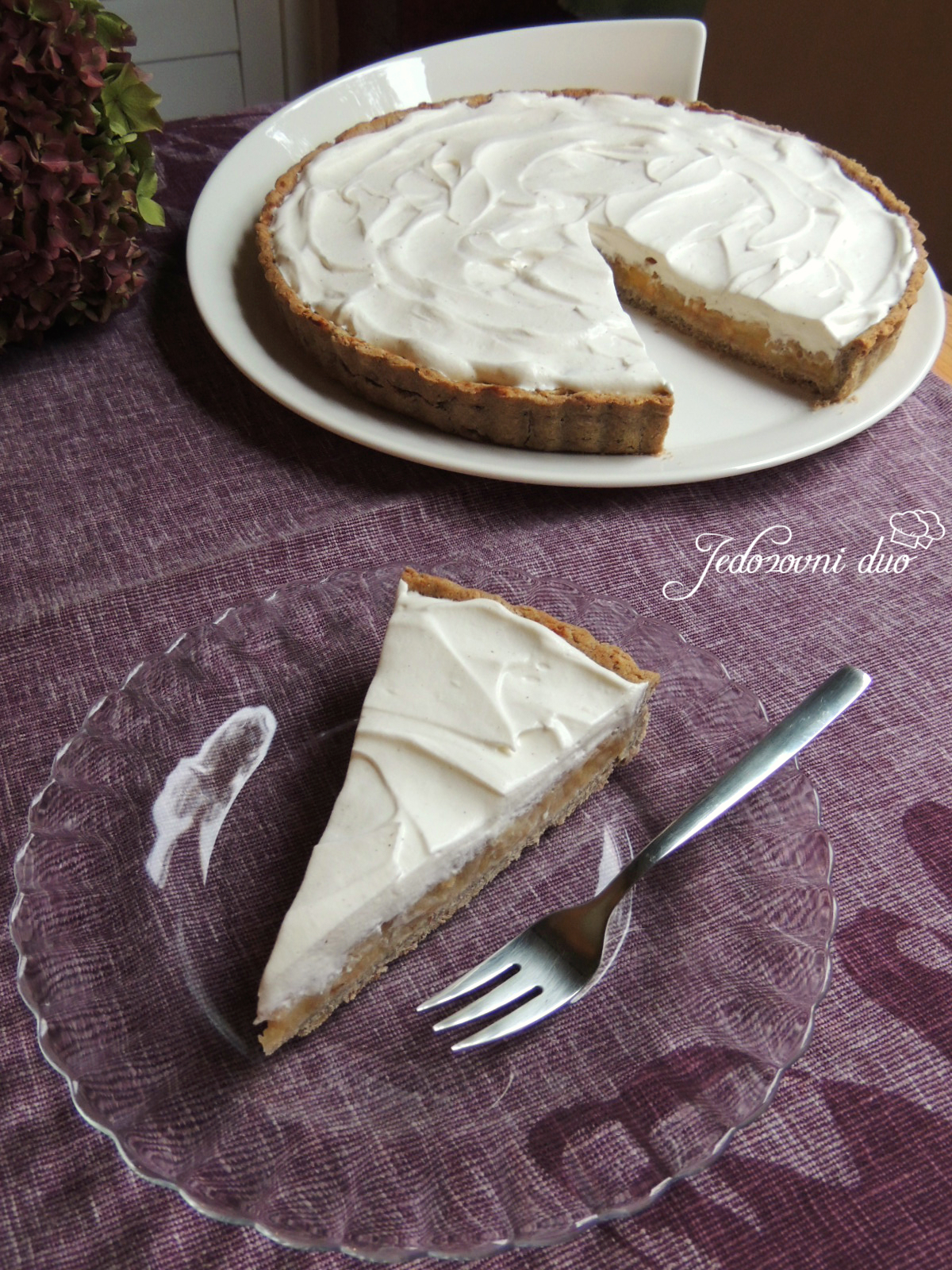 Izvadite iz pećnice, malo ohladite pa po želji ukrasite tučenim slatkim vrhnjem. Ja sam istukla 200ml slatkog vrhnja s malo meda i prstohvatom vanilije u prahu.