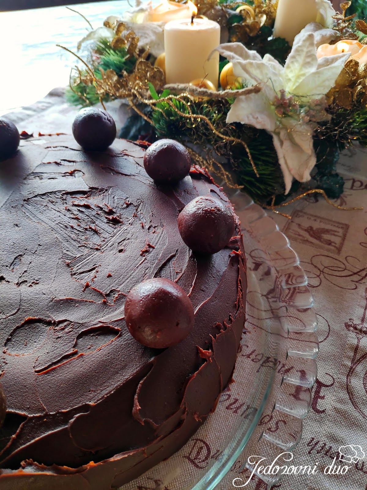 Ukrasite po želji. Ja sam upotrijebila čokoladne Speculaas kuglice. Tortu izvadite iz hladnjaka barem 2 sata prije posluživanja, kako bi krema omekšala i otpustila, tj. prožela se s biskvitom kako treba.