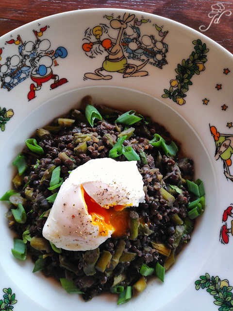 Kuhajte 20ak minuta, dok leća ne omekša i zatim poslužite s malo svježeg narezanog mladog luka i poširanim jajetom.