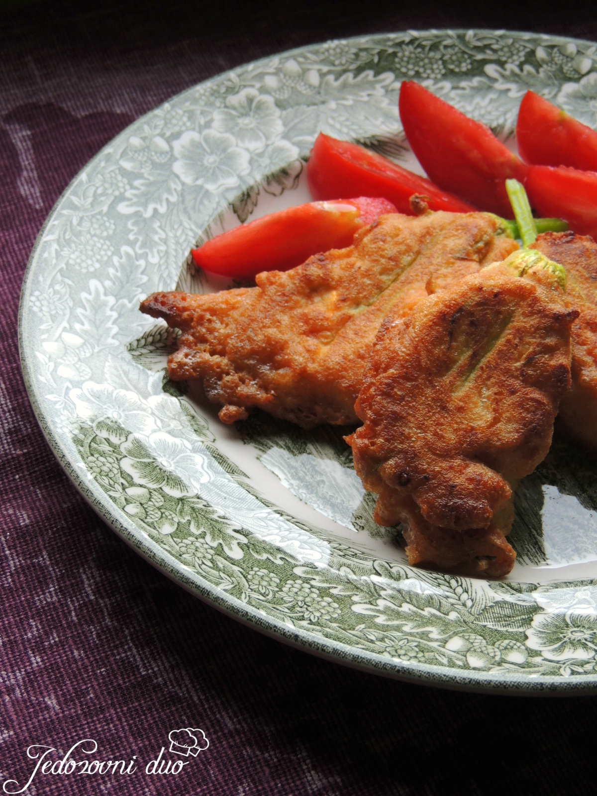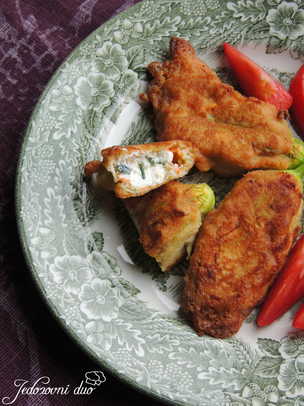 Pomiješajte sir s malo svježe mljevenog papra i vlascem. Cvjetove operite i posušite, zatim ih napunite. Istucite jaje s malo soli i dodajte bademovo brašno. Umačite cvjetove i stavljajte ih u zagrijano ulje.