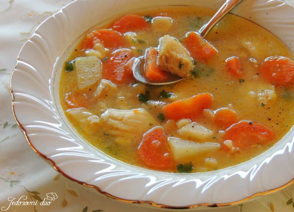 Ribu narežite na komade veličine kutije šibica pa stavite u lonac. Po potrebi dolijte još vode i kuhajte dok batat ne omekša. Pred kraj kuhanja začinite, dodajte nasjeckan peršin i češnjak.