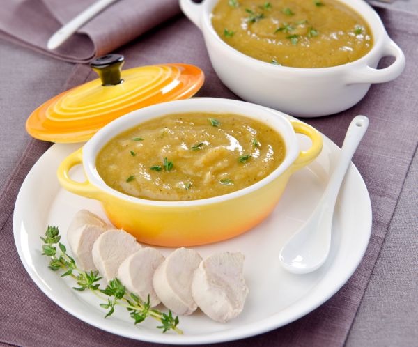 Polovicu povrća izvadite, a ostatak dobro usitnite štapnim mikserom. Dodajte povrtnu kocku, muškatni oraščić, posolite, popaprite i kuhajte još oko 5 minuta. Dolijte vrhnje za kuhanje, vratite izvađeno povrće i kuhajte još 1-2 minute. Servirajte po želji.